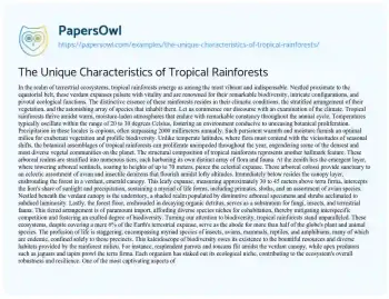 The Unique Characteristics of Tropical Rainforests. (2024, Jun 01). Retrieved from https://hub.papersowl.com/examples/the-unique-characteristics-of-tropical-rainforests/