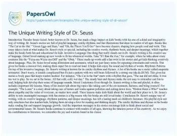 The Unique Writing Style of Dr. Seuss. (2024, Sep 17). Retrieved from https://hub.papersowl.com/examples/the-unique-writing-style-of-dr-seuss/