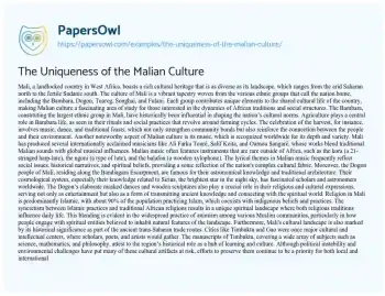 The Uniqueness of the Malian Culture. (2024, Apr 22). Retrieved from https://hub.papersowl.com/examples/the-uniqueness-of-the-malian-culture/
