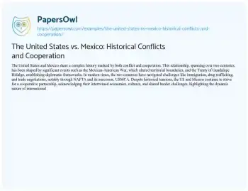 The United States vs. Mexico: Historical Conflicts and Cooperation. (2024, Feb 05). Retrieved from https://hub.papersowl.com/examples/the-united-states-vs-mexico-historical-conflicts-and-cooperation/
