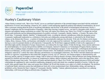 Huxley's Cautionary Vision. (2020, Apr 20). Retrieved from https://hub.papersowl.com/examples/the-unlawfulness-of-science-and-technology-in-the-brave-new-world/