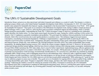 The UN's 17 Sustainable Development Goals. (2023, Mar 21). Retrieved from https://hub.papersowl.com/examples/the-uns-17-sustainable-development-goals/