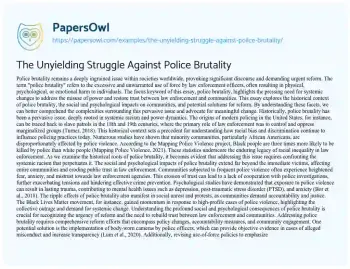 The Unyielding Struggle Against Police Brutality. (2025, Mar 28). Retrieved from https://hub.papersowl.com/examples/the-unyielding-struggle-against-police-brutality/