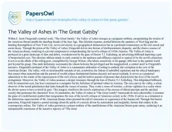 The Valley of Ashes in 'The Great Gatsby'. (2024, Apr 01). Retrieved from https://hub.papersowl.com/examples/the-valley-of-ashes-in-the-great-gatsby/