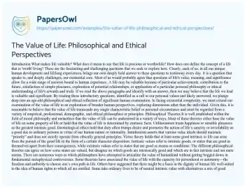 The Value of Life: Philosophical and Ethical Perspectives. (2024, Dec 27). Retrieved from https://hub.papersowl.com/examples/the-value-of-life-philosophical-and-ethical-perspectives/