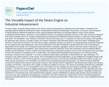 The Versatile Impact of the Steam Engine on Industrial Advancement. (2024, May 28). Retrieved from https://hub.papersowl.com/examples/the-versatile-impact-of-the-steam-engine-on-industrial-advancement/