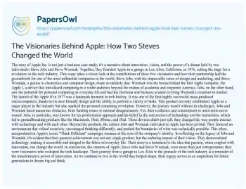 The Visionaries Behind Apple: How Two Steves Changed the World. (2024, Feb 20). Retrieved from https://hub.papersowl.com/examples/the-visionaries-behind-apple-how-two-steves-changed-the-world/