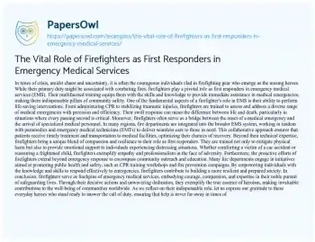 The Vital Role of Firefighters as First Responders in Emergency Medical Services. (2024, Mar 12). Retrieved from https://hub.papersowl.com/examples/the-vital-role-of-firefighters-as-first-responders-in-emergency-medical-services/