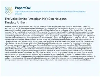 The Voice Behind "American Pie": Don McLean's Timeless Anthem. (2024, Jun 28). Retrieved from https://hub.papersowl.com/examples/the-voice-behind-american-pie-don-mcleans-timeless-anthem/