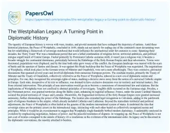 The Westphalian Legacy: A Turning Point in Diplomatic History. (2023, Oct 30). Retrieved from https://hub.papersowl.com/examples/the-westphalian-legacy-a-turning-point-in-diplomatic-history/