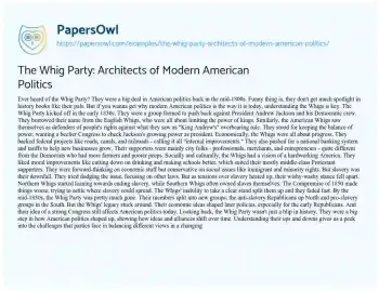 The Whig Party: Architects of Modern American Politics. (2024, Jun 17). Retrieved from https://hub.papersowl.com/examples/the-whig-party-architects-of-modern-american-politics/