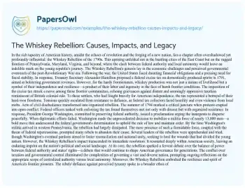 The Whiskey Rebellion: Causes, Impacts, and Legacy. (2024, Jun 28). Retrieved from https://hub.papersowl.com/examples/the-whiskey-rebellion-causes-impacts-and-legacy/