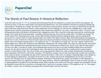 The Words of Paul Revere: A Historical Reflection