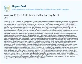Voices of Reform: Child Labor and the Factory Act of 1833. (2021, Apr 10). Retrieved from https://hub.papersowl.com/examples/the-working-conditions-in-the-factories-of-england/