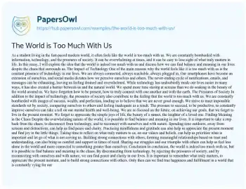 As a student living in the fast-paced modern world, it often feels like the world is too much with us. We are constantly bombarded with information, technology, and the pressures of society. It can be overwhelming at times, and it can be easy to lose sight of what truly matters in life. In this essay, I will explore the idea that the world is indeed too much with us and discuss how we can find balance and meaning in our lives despite the chaos that surrounds us.