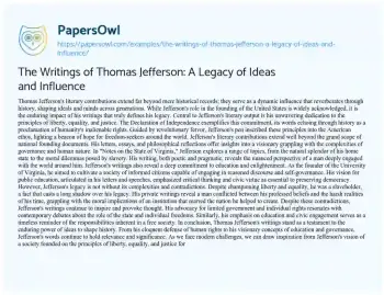 The Writings of Thomas Jefferson: A Legacy of Ideas and Influence. (2024, May 28). Retrieved from https://hub.papersowl.com/examples/the-writings-of-thomas-jefferson-a-legacy-of-ideas-and-influence/