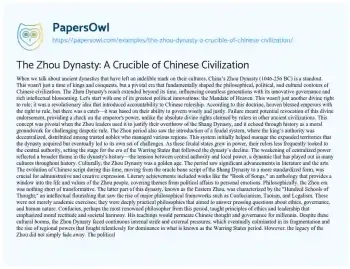 The Zhou Dynasty: A Crucible of Chinese Civilization. (2024, May 12). Retrieved from https://hub.papersowl.com/examples/the-zhou-dynasty-a-crucible-of-chinese-civilization/