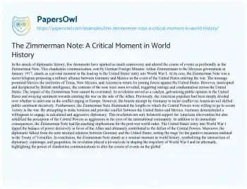 The Zimmerman Note: A Critical Moment in World History. (2024, May 28). Retrieved from https://hub.papersowl.com/examples/the-zimmerman-note-a-critical-moment-in-world-history/