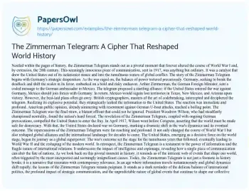 The Zimmerman Telegram: A Cipher That Reshaped World History. (2024, Jan 26). Retrieved from https://hub.papersowl.com/examples/the-zimmerman-telegram-a-cipher-that-reshaped-world-history/