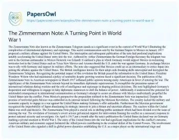 The Zimmermann Note: A Turning Point in World War 1. (2024, Jul 06). Retrieved from https://hub.papersowl.com/examples/the-zimmermann-note-a-turning-point-in-world-war-1/