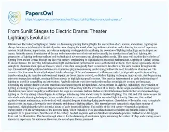 From Sunlit Stages to Electric Drama: Theater Lighting's Evolution. (2019, Jan 23). Retrieved from https://hub.papersowl.com/examples/theatrical-lighting-in-ancient-greece/