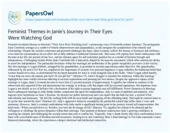 Feminist Themes in Janie’s Journey in Their Eyes Were Watching God. (2020, Feb 14). Retrieved from https://hub.papersowl.com/examples/their-eyes-were-watching-god-best-for-janie/