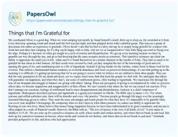 This essay will reflect on the things to be grateful for in life, discussing the importance of gratitude for mental health, relationships, and overall well-being. More free essay examples are accessible at PapersOwl about Faith.