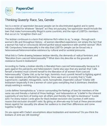 Thinking Queerly: Race, Sex, Gender. (2019, Jul 27). Retrieved from https://hub.papersowl.com/examples/thinking-queerly-race-sex-gender/