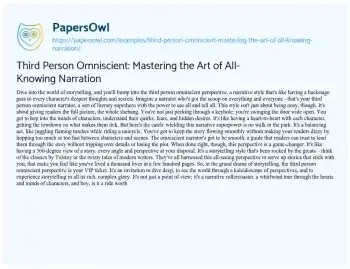 Third Person Omniscient: Mastering the Art of All-Knowing Narration. (2024, Jan 26). Retrieved from https://hub.papersowl.com/examples/third-person-omniscient-mastering-the-art-of-all-knowing-narration/