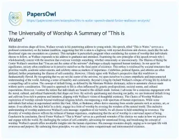 The Universality of Worship: A Summary of “This is Water”. (2023, Aug 01). Retrieved from https://hub.papersowl.com/examples/this-is-water-speech-david-foster-wallaces-analysis/