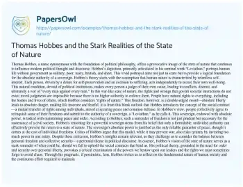 Order now Each person, driven by a desire for self-preservation and an aversion to suffering, acts independently to secure their own well-being. This natural condition, devoid of political institutions, makes every person a judge of their own cause, leading to conflicts, distrust, and ultimately a war of "every man against every man."