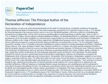 Thomas Jefferson: The Principal Author of the Declaration of Independence. (2024, May 28). Retrieved from https://hub.papersowl.com/examples/thomas-jefferson-the-principal-author-of-the-declaration-of-independence/