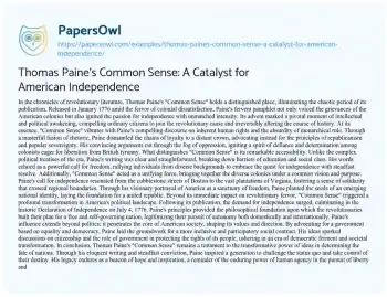 Thomas Paine’s Common Sense: A Catalyst for American Independence