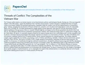Threads of Conflict: The Complexities of the Vietnam War. (2024, Mar 25). Retrieved from https://hub.papersowl.com/examples/threads-of-conflict-the-complexities-of-the-vietnam-war/