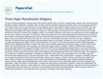 Three Major Monotheistic Religions. (2024, Sep 17). Retrieved from https://hub.papersowl.com/examples/three-major-monotheistic-religions/