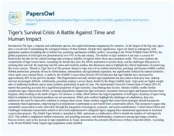 Tiger's Survival Crisis: A Battle Against Time and Human Impact. (2024, Dec 27). Retrieved from https://hub.papersowl.com/examples/tigers-survival-crisis-a-battle-against-time-and-human-impact/