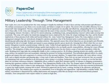 Military Leadership Through Time Management. (2023, Sep 18). Retrieved from https://hub.papersowl.com/examples/time-management-in-the-army-precision-adaptability-and-mastering-the-clock-in-high-stakes-environments/