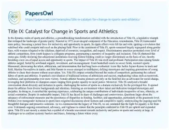 Title IX: Catalyst for Change in Sports and Athletics. (2024, Mar 25). Retrieved from https://hub.papersowl.com/examples/title-ix-catalyst-for-change-in-sports-and-athletics/
