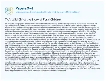 Tlc's Wild Child; the Story of Feral Children. (2024, Apr 14). Retrieved from https://hub.papersowl.com/examples/tlcs-wild-child-the-story-of-feral-children/