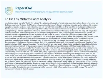 To His Coy Mistress Poem Analysis. (2024, Dec 27). Retrieved from https://hub.papersowl.com/examples/to-his-coy-mistress-poem-analysis/