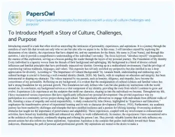 To Introduce Myself: a Story of Culture, Challenges, and Purpose. (2025, Mar 27). Retrieved from https://hub.papersowl.com/examples/to-introduce-myself-a-story-of-culture-challenges-and-purpose/