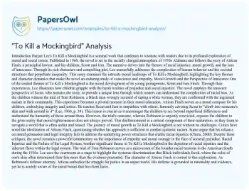 "To Kill a Mockingbird" Analysis. (2024, Dec 27). Retrieved from https://hub.papersowl.com/examples/to-kill-a-mockingbird-analysis/