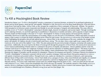 To Kill a Mockingbird Book Review. (2024, Dec 27). Retrieved from https://hub.papersowl.com/examples/to-kill-a-mockingbird-book-review/