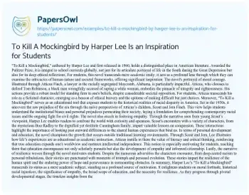 To Kill A Mockingbird by Harper Lee Is an Inspiration for Students. (2024, May 01). Retrieved from https://hub.papersowl.com/examples/to-kill-a-mockingbird-by-harper-lee-is-an-inspiration-for-students/