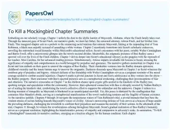To Kill a Mockingbird Chapter Summaries. (2024, May 01). Retrieved from https://hub.papersowl.com/examples/to-kill-a-mockingbird-chapter-summaries/