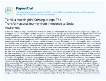 To Kill a Mockingbird Coming of Age: The Transformational Journey from Innocence to Social Awareness