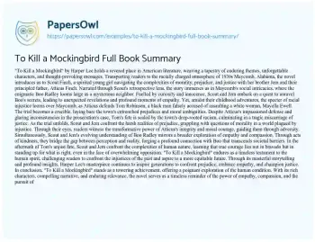 To Kill a Mockingbird Full Book Summary. (2024, May 01). Retrieved from https://hub.papersowl.com/examples/to-kill-a-mockingbird-full-book-summary/