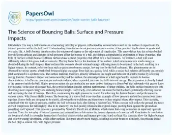 The Science of Bouncing Balls: Surface and Pressure Impacts. (2019, Oct 07). Retrieved from https://hub.papersowl.com/examples/topic-soccer-balls-bounce/
