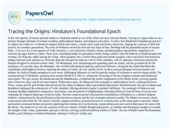 Tracing the Origins: Hinduism's Foundational Epoch. (2024, May 12). Retrieved from https://hub.papersowl.com/examples/tracing-the-origins-hinduisms-foundational-epoch/