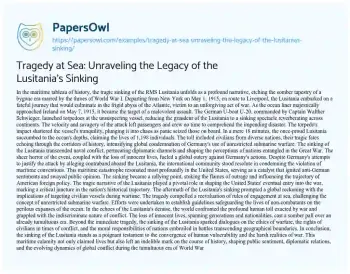 Tragedy at Sea: Unraveling the Legacy of the Lusitania's Sinking. (2024, Feb 01). Retrieved from https://hub.papersowl.com/examples/tragedy-at-sea-unraveling-the-legacy-of-the-lusitanias-sinking/